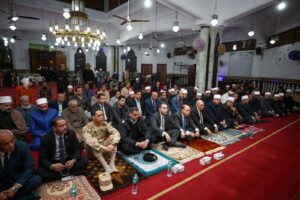 شهد اللواء دكتور علاء عبدالمعطي، محافظ كفرالشيخ، اليوم الخميس، الاحتفال بذكرى ليلة «الإسراء والمعراج» للعام 1447 هـ ، الذي أقيم بمسجد الفتح “الاستاد” بمدينة كفرالشيخ، مقدماً التهنئة لأهالي المحافظة.. نائباً عن فخامة الرئيس عبد الفتاح السيسي، رئيس الجمهورية؛ مؤكداً على تعزيز القيم الروحية والإنسانية، وذلك بحضور الدكتور عمرو البشبيشي، نائب المحافظ، واللواء محمد شوقي بدر، السكرتير العام للمحافظة، واللواء دكتور سامح العزب، مدير إدارة مرور كفرالشيخ، والمقدم أحمد حسن، نائباً عن المستشار العسكري، وأحمد عيسى، رئيس مركز ومدينة كفرالشيخ، وأعضاء مجلسي النواب والشيوخ، والدكتور رمضان عبدالسميع، وكيل وزارة الأوقاف، والدكتور عبدالقادر سليم، مدير عام الدعوة، ورجال الأزهر الشريف والأوقاف، والقيادات التنفيذية بالمحافظة.