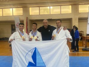 ثانيًا: الكاتا الجماعي كما توج فريق جامعة كفر الشيخ للكاراتيه بالميدالية الذهبية في منافسات الكاتا الجماعي، وضم الفريق اللاعبين: عبدالرحمن محمد طلبة الفرقة الثالثة كلية العلاج الطبيعي عمر محمد أحمد طلبة الفرقة الثالثة كلية العلاج الطبيعي أحمد محمد نصر الدين الفرقة الأولى كلية علوم الرياضة وذلك بعد أداء جماعي منسق عكس روح الفريق والانضباط والمهارة العالية التي يتمتع بها طلاب الجامعة.